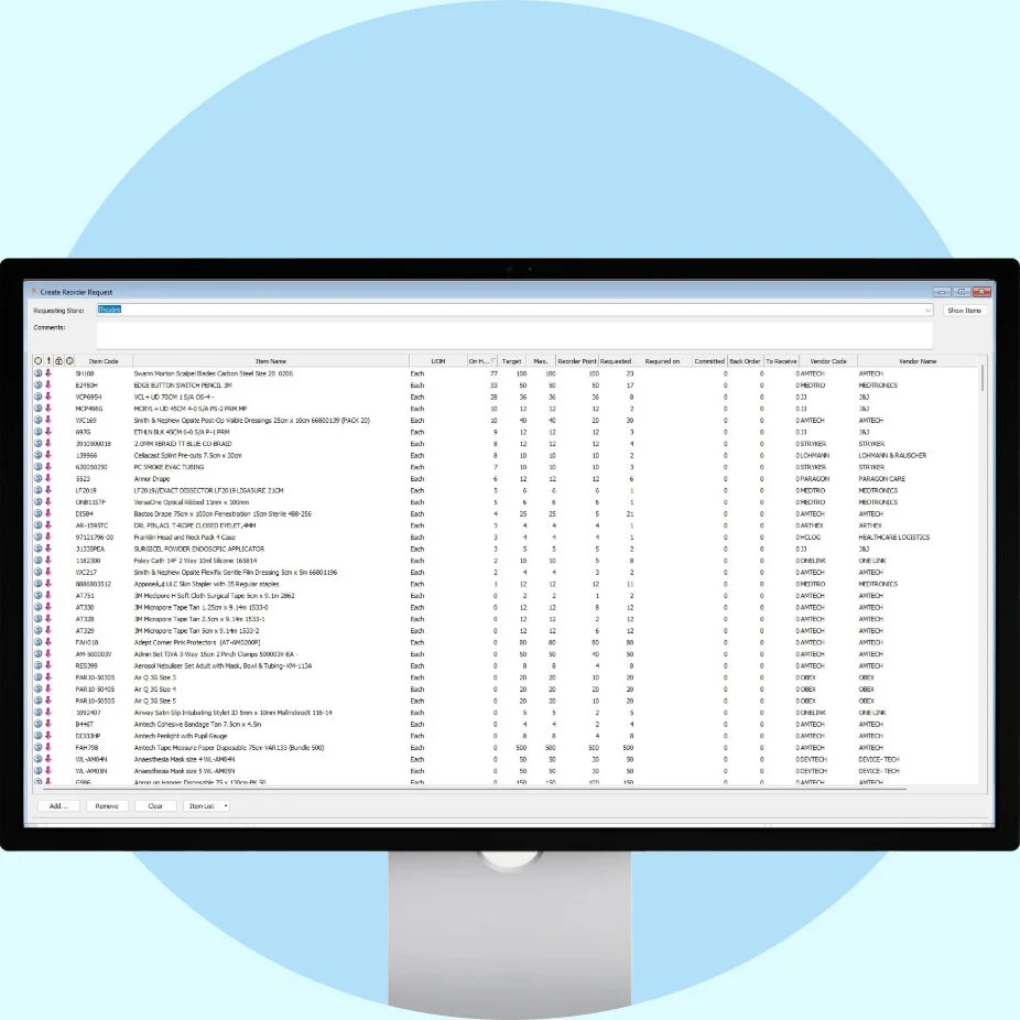 End-to-end control over supplies, equipment and procurement processes. Real-time tracking of stock levels, automated re-order alerts, and supplier management features. Supports purchase requests with integrated financial and clinical modules, and invoice tracking.
